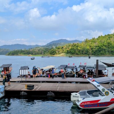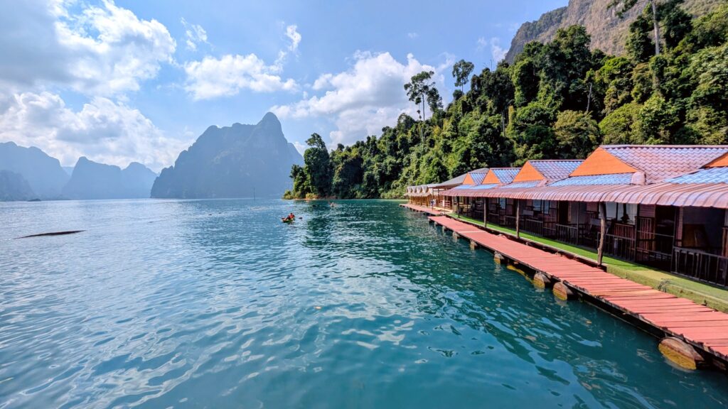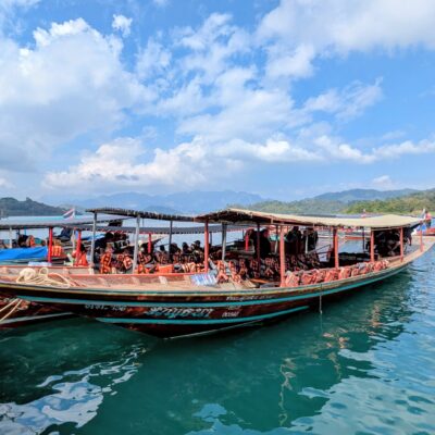 The journey to Ratchaprapha Pier takes about 1 hour. There is a park entry fee of 300 bhat to pay before boarding the longtail boats to reach the raft houses and viewpoint.